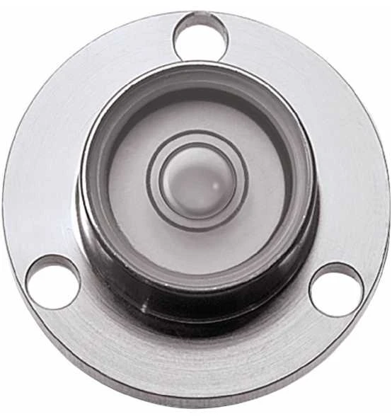 aus Glas mit glasklarer Libellenflüssigkeit · Metallgehäuse · 3-Loch-Flansch · für den Maschinenbau · Höhe 11 mm · arc. min: gibt den Radius der Kuppel an · je größer der Wert, desto langsamer läuft die Libelle
