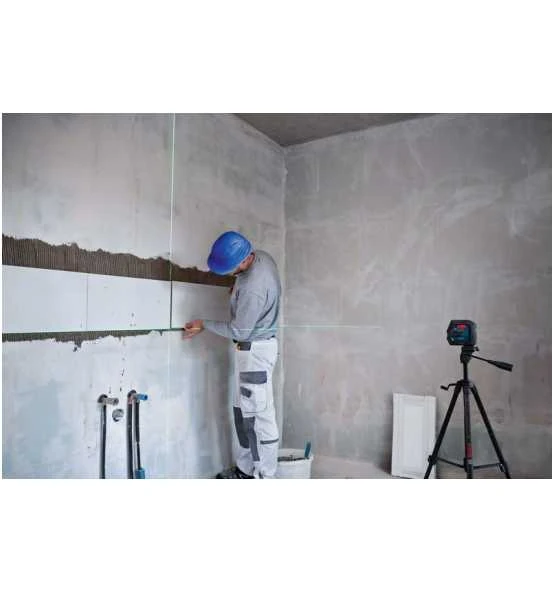- Vertikale und horizontale grüne Laserlinien sorgen für eine bessere Sichtbarkeit in helleren Umgebungen.