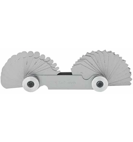 Aus Normalstahl, Radien konkav und konvex, mit Maßangabe auf dem Deckblatt. Zum Prüfen von Innen- und Außenradien.