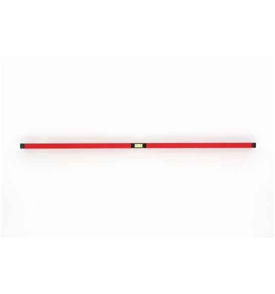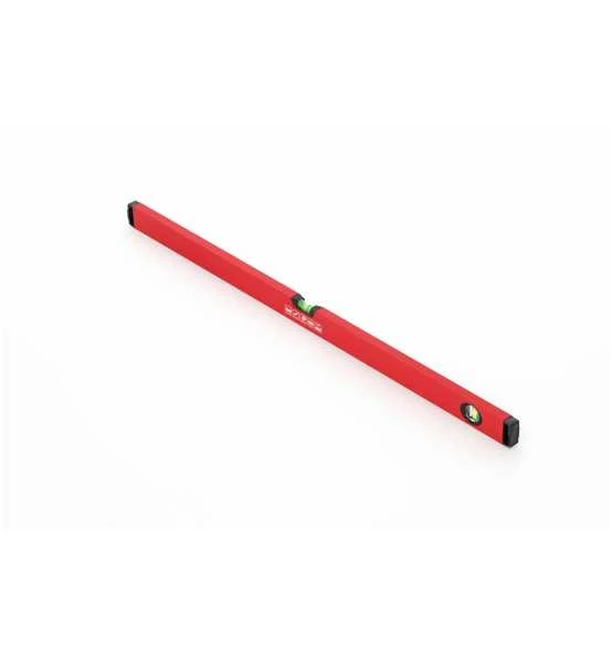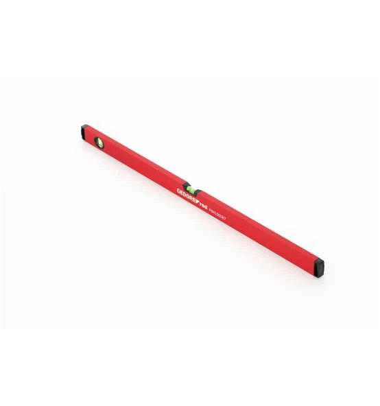 Glattes Leichtmetall-Rechteckprofil, Eine Vertikal-Libelle und eine Horizontal-Libelle, Messgenauigkeit: +/- 0,5 mm/m, Rot pulverbeschichtet, Endkappen aus schwarzem, stoß- und schlagfestem Kunststoff
