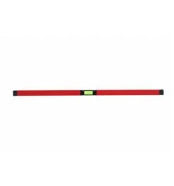 Glattes Aluminium-Rechteckprofil, Eine Vertikal-Libelle und eine Horizontal-Libelle, aus Acrylglas, Messgenauigkeit: +/- 0,5 mm/m, Rot pulverbeschichtet, matt, Endkappen aus schwarzem, stoß- und schlagfestem Kunststoff, Mit Aufhängeloch, Gefräste Unterkante, RAL 3002