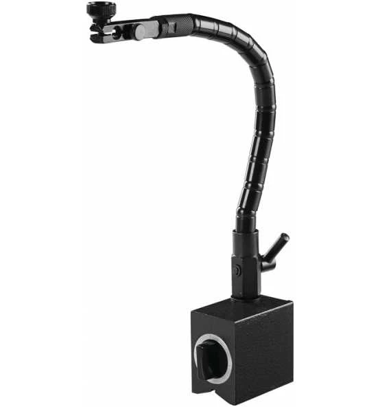mit flexiblem Stahlgliederarm · mit Feineinstellung und abschaltbarem Magnetfuß mit prismatischer Sohle · große Beweglichkeit durch flexiblen Gliederarm · Messuhraufnahme um 90° schwenkbar · Messuhraufnahme 8 mm H7 Weitere technische Eigenschaften: · Magnetfußhöhe: 65mm · Magnetfußtiefe: 46mm · Magnetfußbreite: 70mm · Messuhraufnahme: 8mm