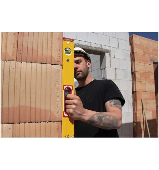 Auf dem Bau wird eine Wasserwaage stark beansprucht und es kann leicht passieren, dass sie herunterfällt. Umso wichtiger ist es, dass sie auch bei täglicher Belastung weiterhin so genau misst wie am ersten Tag. Die zwei Vertikal-Libellen ermöglichen das Ablesen in jeder Position. Zwei Grifföffnungen sorgen darüber hinaus für einen sicheren Halt. Das stabile verstärkte Alu-Rechteckprofil und die Einbautechnologie von Stabila mit fest eingegossener Libelle machen das Gerät zum perfekten Partner für harte Baustelleneinsätze. Wasserwaagen von Stabila: Präzision, die ein Leben lang hält.