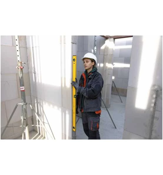 Viele Profis vertrauen auf die Type 70-2, ein zuverlässiges, leichtes und äußerst präzises Messwerkzeug. Die zwei Vertikal-Libellen ermöglichen das Ablesen in jeder Position. Dank der großen Modellvielfalt wird ein Messbereich zwischen 40 cm und 180 cm abgedeckt. Wie bei allen Wasserwaagen von Stabila werden Libelle und Messfläche im Produktionsprozess exakt zueinander ausgerichtet und anschließend dauerhaft miteinander verbunden, um maximale Messgenauigkeit über viele Jahre hinweg sicherzustellen.