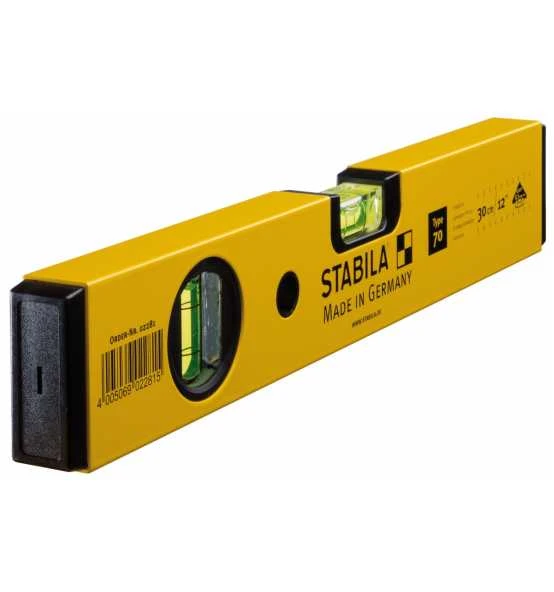 Viele Profis vertrauen auf die Type 70, ein zuverlässiges, leichtes und äußerst präzises Messwerkzeug. Dank der großen Modellvielfalt wird ein Messbereich zwischen 30 cm bis 200 cm abgedeckt. Wie bei allen Wasserwaagen von Stabila werden Libelle und Messfläche im Produktionsprozess exakt zueinander ausgerichtet und anschließend dauerhaft miteinander verbunden, um maximale Messgenauigkeit über viele Jahre hinweg sicherzustellen.
