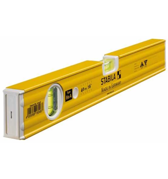 Professionelle Anwender sind auf stabile, präzise und verlässliche Wasserwaagen wie die 80 A angewiesen. Das Alu-Rechteckprofil mit Verstärkungsrippen und die Einbautechnologie von Stabila sorgen für Präzision und eine lange Lebensdauer. Libelle und Messfläche werden im Produktionsprozess exakt zueinander ausgerichtet und anschließend dauerhaft miteinander verbunden. So stellt Stabila sicher, dass die Wasserwaage auch nach vielen Jahren absolut präzise misst. Sie haben die Wahl aus verschiedenen Längen von 30 cm bis 120 cm. Diese Wasserwaage hält, was sie verspricht.