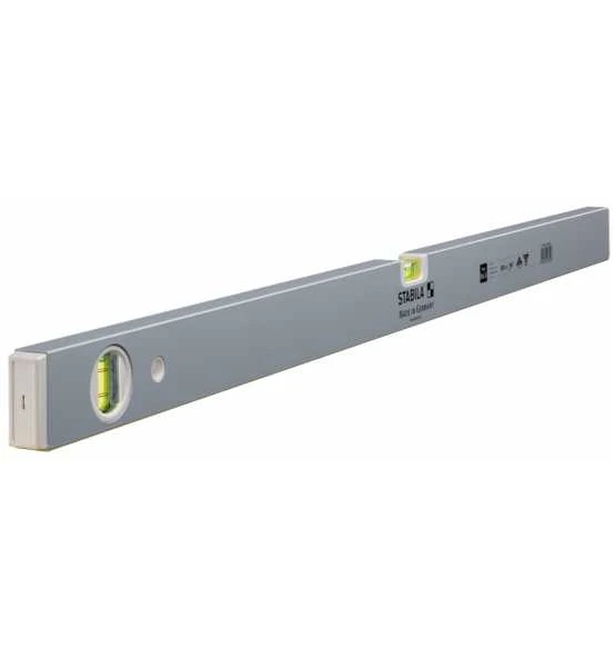 Glattes Aluminium-Rechteckprofil. Beschichtete Messfläche schont empfindliche Oberflächen. Einfach zu reinigen dank glatter Seitenflächen und elektrostatischer Pulverbeschichtung. Kunststoff-Endkappen schützen das Profil. Stabila Einbautechnologie sorgt für Langzeitpräzision – Messgenauigkeit in Normalposition ± 0,5 mm/m, in Umschlagposition ± 1,0 mm/m.