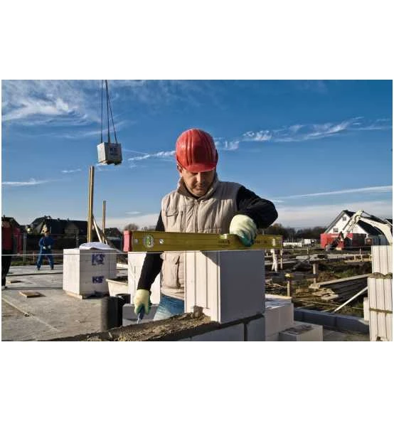 Auf dem Bau wird eine Wasserwaage stark beansprucht und es kann leicht passieren, dass sie herunterfällt. Umso wichtiger ist es, dass sie auch bei täglicher Belastung weiterhin so genau misst wie am ersten Tag. Die zwei Vertikal-Libellen ermöglichen das Ablesen in jeder Position. Das stabile verstärkte Alu-Rechteckprofil und die Einbautechnologie von Stabila mit fest eingegossener Libelle machen das Gerät zum perfekten Partner für harte Baustelleneinsätze. Wasserwaagen von Stabila: Präzision, die ein Leben lang hält.